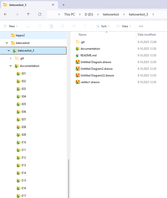 9. Kansion **tietoverkot_3** pitäisi näkyä sinisellä tekstillä kuten oheisessa kuvassa.
