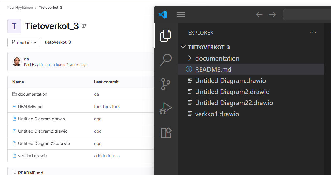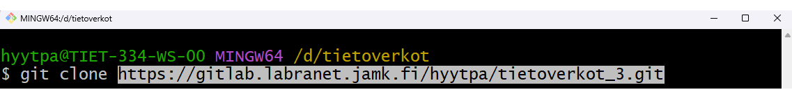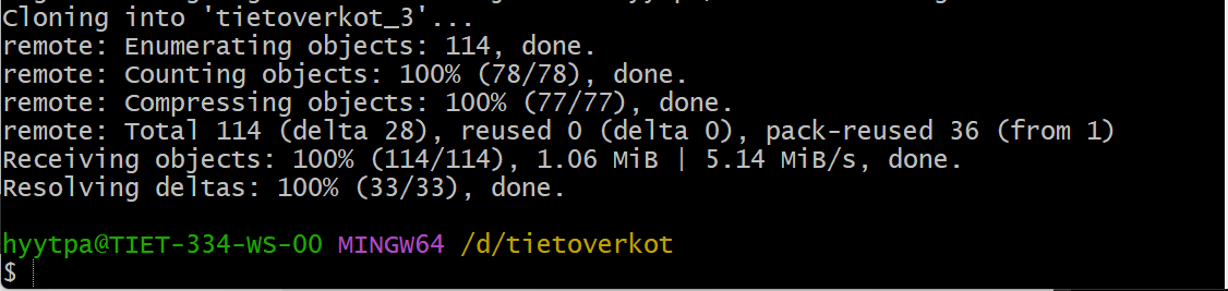7. Koska kloonasin projekti nimeltä **tietoverkot_3**, kansioon pitäisi syntyä saman niminen hakemisto.